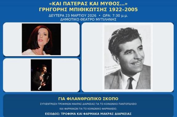 Μια ξεχωριστή εκδήλωση αφιερωμένη στον Γρηγόρη Μπιθικώτση θα πραγματοποιηθεί στη Μυτιλήνη στις 23 Μαρτίου με παρουσίαση βιβλίου και μουσική παράσταση.