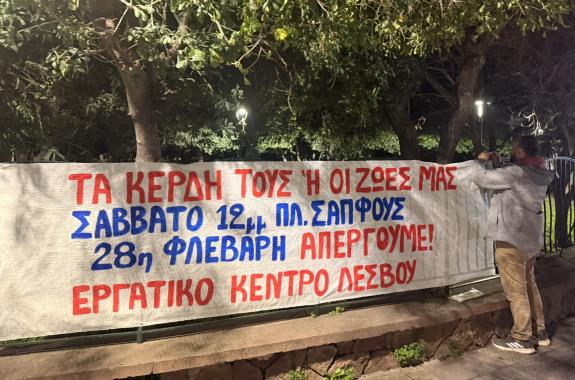 Τα μέλη της διοίκησης του Παλλεσβιακού Εργατοϋπαλληλικού Κέντρου βρίσκονται στη μάχη για την επιτυχία της απεργίας, που θα γίνει το Σάββατο 28 Φλεβάρη στις 12 μ.μ., στη Πλατεία Σαπφούς, μέρα που συμπληρώνονται 3 χρόνια από το έγκλημα στα Τέμπη. Χθες «στόλισαν» την πόλη της Μυτιλήνης, με πανό και...