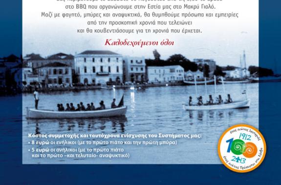 Το 3ο Σύστημα Ναυτοπροσκόπων Μυτιλήνης οργανώνει το ερχόμενο Σαββάτο 10 Αυγούστου στις 8,30 το βράδυ, στον όμορφο χώρο της Εστίας του στο Μακρύ Γυαλό, "βραδιά ψησίματος". Με σουβλάκια, μπύρες και αναψυκτικά μέλη και φίλοι του Συστήματος θα γιορτάσουν το τέλος της προσκοπικής χρονιάς αλλά και θα τα...