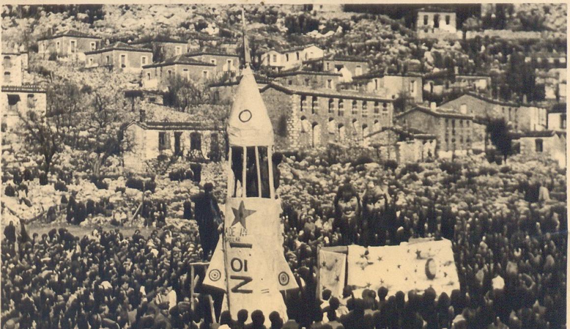 Τις Αποκριές του 1944 ηχεί η προφητική φωνή του καρνάβαλου που προβλέπει την ήττα του γερμανικού φασισμού και την απελευθέρωση της πατρίδας.