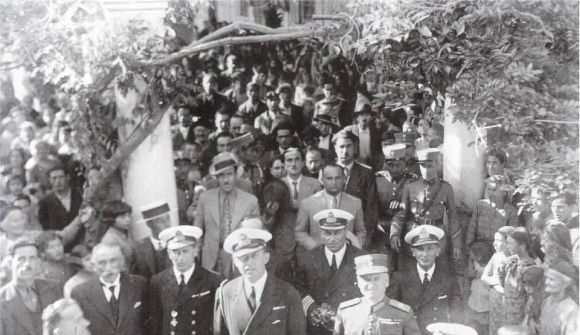 Ο τότε διάδοχος του Ελληνικού Θρόνου και μετέπειτα βασιλιάς Παύλος (στο μέσον) επισκέπτεται την Αγιάσο (28-5-1936).