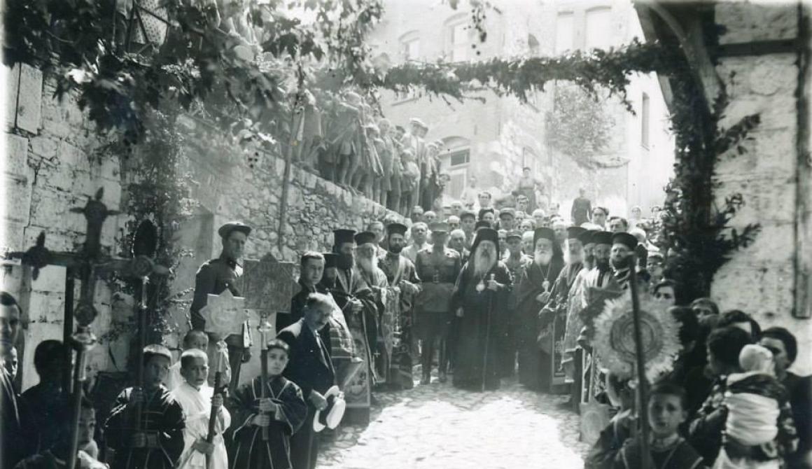 Ο Πάπας και Πατριάρχης Αλεξανδρείας Μελέτιος Μεταξάκης στην Αγιάσο (23-8-1933).