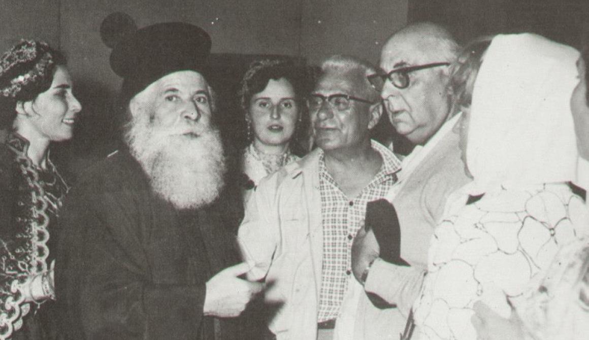 Ο υπουργός Αιγαίου Κοσμάς Σφυρίου (δεξιά) και ο νομάρχης Λέσβου Νίκος Σηφουνάκης επισκέπτονται το Λαογραφικό Μουσείο του Αναγνωστηρίου (15-8-1985). Στο μέσον ο πρόεδρος του Αναγνωστηρίου Πάνος Πράτσος.