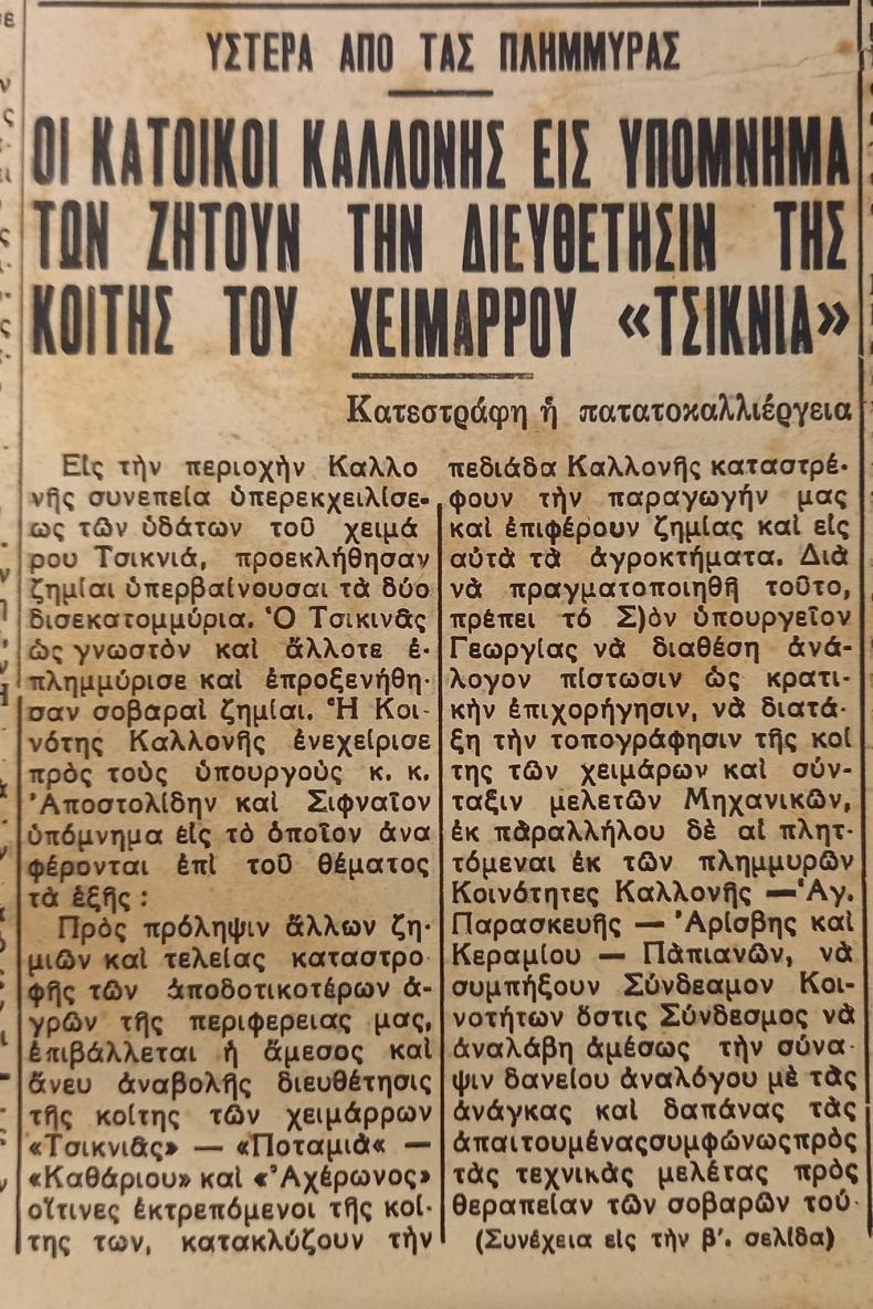 Η Καλλονή και οι πλημμύρες: Μια ιστορία που επαναλαμβάνεται – Από τον Τσικνιά του 1931 ως τις σημερινές καταστροφές