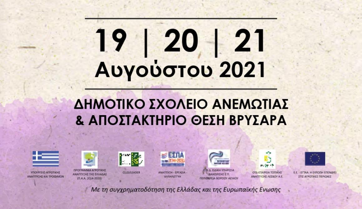 Την 5η Γιορτή Αμπελουργίας με τον ιδιαίτερο τίτλο “Άνεμος, Άμπελος & Οίνος” διοργανώνει στις 19 - 20 & 21 Αυγούστου 2021 ο Σύλλογος Αμπελουργών Ανεμώτιας Λέσβου «ο Κάμπος».