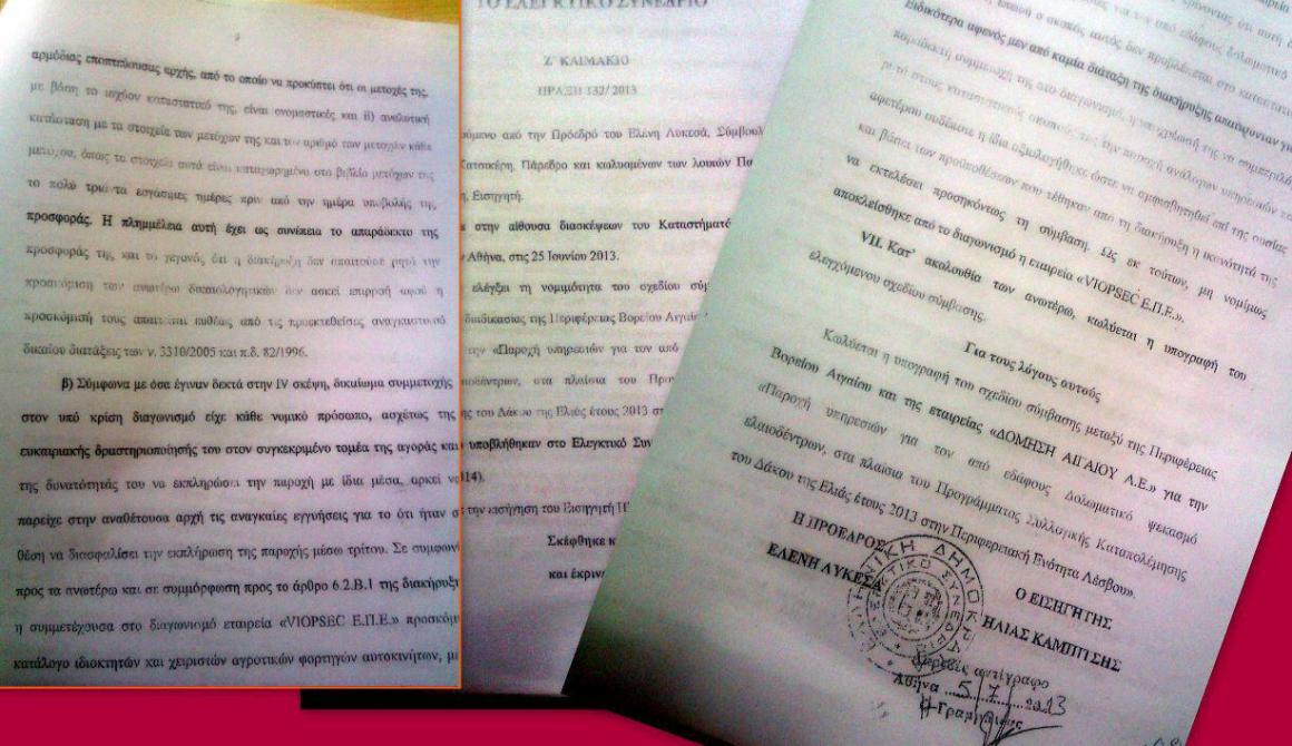 To Lesvosnews.net αποκαλύπτει την απόφαση του Ελεγκτικού Συνεδρίου για τη δακοκτονία. (Υπενθυμίζουμε ότι φέτος στη Λέσβο είναι η δεύτερη χρονιά που για το έργο της δακοκτονίας γίνεται διαγωνισμός ανάληψης απο ιδιώτη. Ανάδοχος την προηγούμενη χρονιά ήταν η εταιρεία «Δόμηση Αιγαίου». Φέτος κατατέθηκαν στο διαγωνισμό της Περιφέρειας δύο προσφορές από τις εταιρείες ΔΟΜΗΣΗ ΑΙΓΑΙΟΥ ΑΕ και VIOPSEC ΕΠΕ)