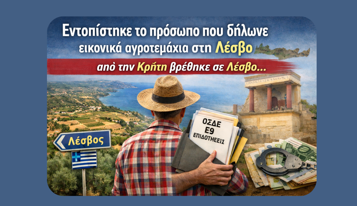 Η Λέσβος βρίσκεται ξανά στο επίκεντρο του μεγάλου ελέγχου για τις αγροτικές επιδοτήσεις, καθώς εντοπίστηκε πρόσωπο που δήλωνε εικονικά αγροτεμάχια στο νησί, χωρίς πραγματική παραγωγική δραστηριότητα, με μοναδικό στόχο την είσπραξη ενισχύσεων.