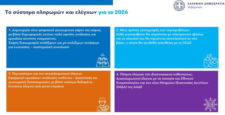- Προβλέπονται περισσότεροι και πιο στοχευμένοι έλεγχοι, με εργαλεία ανάλυσης κινδύνου, γεωχωρικές διασταυρώσεις, επιτόπιους ελέγχους από μικτά κλιμάκια.