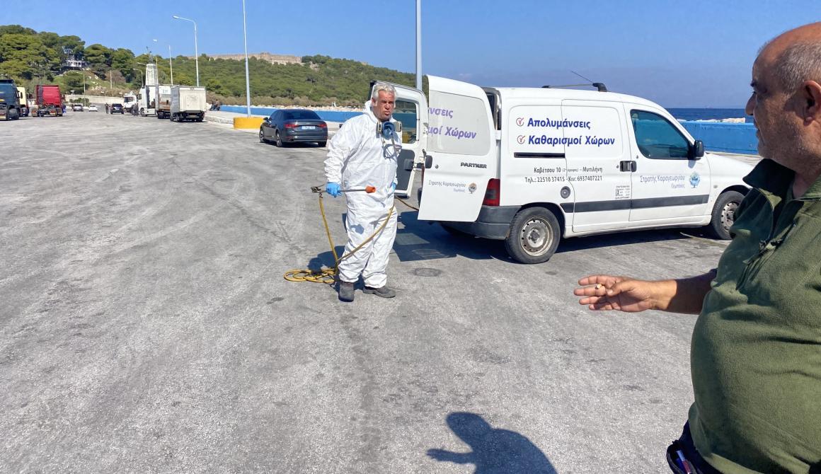 Όπως προβλέπεται, τα φορτηγά που μεταφέρουν ζωοτροφές στο νησί δεν επιτρέπεται να εξέλθουν από τον χώρο του λιμένα. Μετά την εκφόρτωση, υποχρεούνται να επιστρέψουν άμεσα, χωρίς καμία ενδιάμεση μετακίνηση εντός της Λέσβου. Πριν την αναχώρησή τους, τα οχήματα απολυμαίνονται υποχρεωτικά εντός της απολυμασμένης ζώνης του λιμανιού.