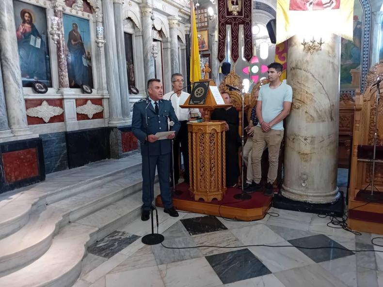 Αναλυτικότερα, μετά το πέρας της Θείας Λειτουργίας, που τελέστηκε σήμερα το πρωί, στον Ιερό Μητροπολιτικό Ναό Αγίου Αθανασίου στη Μυτιλήνη, στον Ιερό Ναό Αγίου Αρτεμίου στη Χίο και στον Ιερό Μητροπολιτικό Ναό Αγίου Νικολάου στη Σάμο, τελέστηκαν δοξολογίες υπέρ των Αποστράτων Αστυνομικών και αναγνώστηκε η Ημερήσια Διαταγή του κ. Αρχηγού της Ελληνικής Αστυνομίας, ενώ ακολούθησε η παράθεση δεξιώσεων.