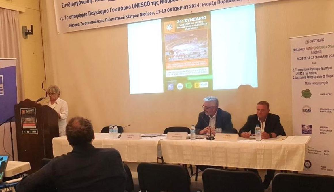 «Χαιρετίζω το 34ο Συνέδριο του Πανελλήνιου Δικτύου Οικολογικών Οργανώσεων που πραγματοποιείται εδώ, στην όμορφη Νίσυρο.
