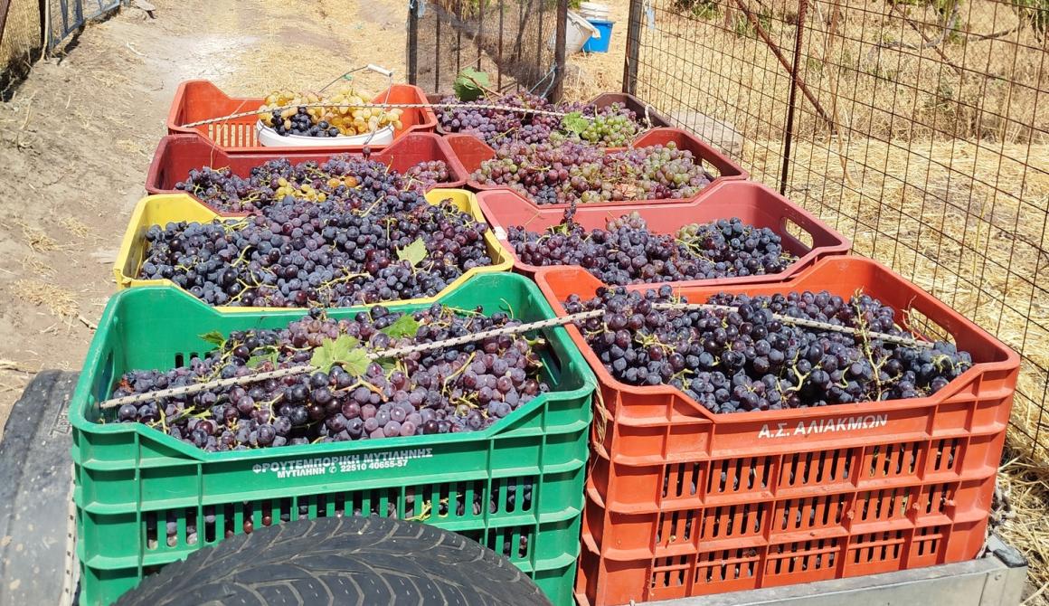 Μιλάμε βέβαια για τον τρύγο του πρώιμου αμπελιού μας στην περιοχή «Αρακλή», στον κάμπο της Καλλονής. Εκεί κοντά στο εξωκλήσι που τιμάται στη χάρη του Σωτήρος, τον «Ξ’το» των αγιαπαρασκευτών.