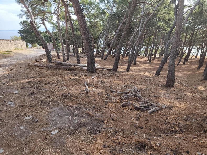 Χόρτα παντού, που ο Δήμος θα έπρεπε από καιρό να έχει κόψει. Λίγα μόλις μέτρα παραπέρα, στο στρατιωτικό φυλάκιο, αν η φωτιά περνούσε μέσα στο άλσος θα έβρισκε μπροστά της βουνά από καύσιμη ύλη: κλαδιά και κορμούς δέντρων που κόπηκαν πέρυσι και κανείς δεν μπήκε στον κόπο να μαζέψει. Χθες, τυχαία, δεν κάηκε το άλσος.
