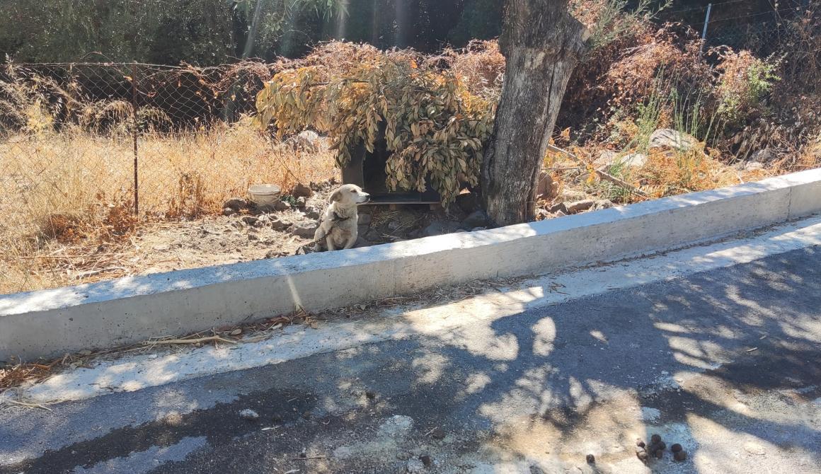 Στις αρχές Αυγούστου 2024, η ΚΙΒΩΤΟΣ Μυτιλήνης ενημερώθηκε από τουρίστες για 1 σκύλο ο οποίος ζούσε ΜΟΝΙΜΑ δεμένος, ΠΑΝΩ στον δημόσιο δρόμο στην ευρύτερη περιοχή της Συκαμιάς Λέσβου. Επισκεφθήκαμε το σημείο και διαπιστώσαμε αυτά που βλέπετε στις φωτογραφίες: ένας άτυχος σκυλάκος μόνιμα αλυσοδεμένος ΕΠΙ ΤΗΣ ΔΗΜΟΣΙΑΣ ΟΔΟΥ (έξω από περίφραξη). Είχε ελάχιστο πολύ βρώμικο νερό και λιγοστό φαγητό. Το σκυλάκι φοβόταν και δεν μπορέσαμε να το πλησιάσουμε εύκολα. Επίσης, καθώς το μήκος της αλυσίδας του του επέτρεπε να βγει στο δρόμο, κινδύνευε κάθε στιγμή από διερχόμενα αυτοκίνητα, ειδικά τη νύχτα, και ακόμα περισσότερo αφού βρισκόταν πάνω σε στροφή!