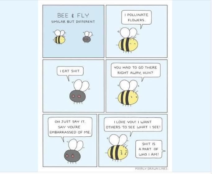 «Η μέλισσα δεν προσπαθεί να εξηγήσει στη μύγα γιατί το μέλι είναι καλύτερο από τα σκατά.», είπε κάποιος στο κρατητήριο. (Είναι παροιμία που δεν είχα ξανακούσει.)