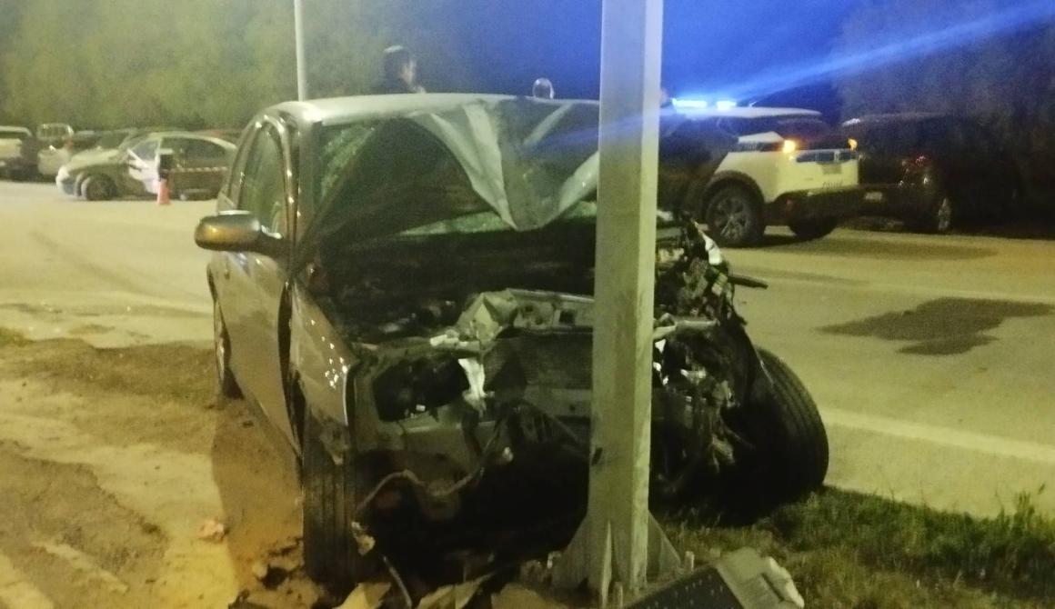 Σοκαριστικό τροχαίο έξω από το Αεροδρόμιο Μυτιλήνης: Αυτοκίνητο καρφώθηκε σε κολώνα – τέσσερις τραυματίες