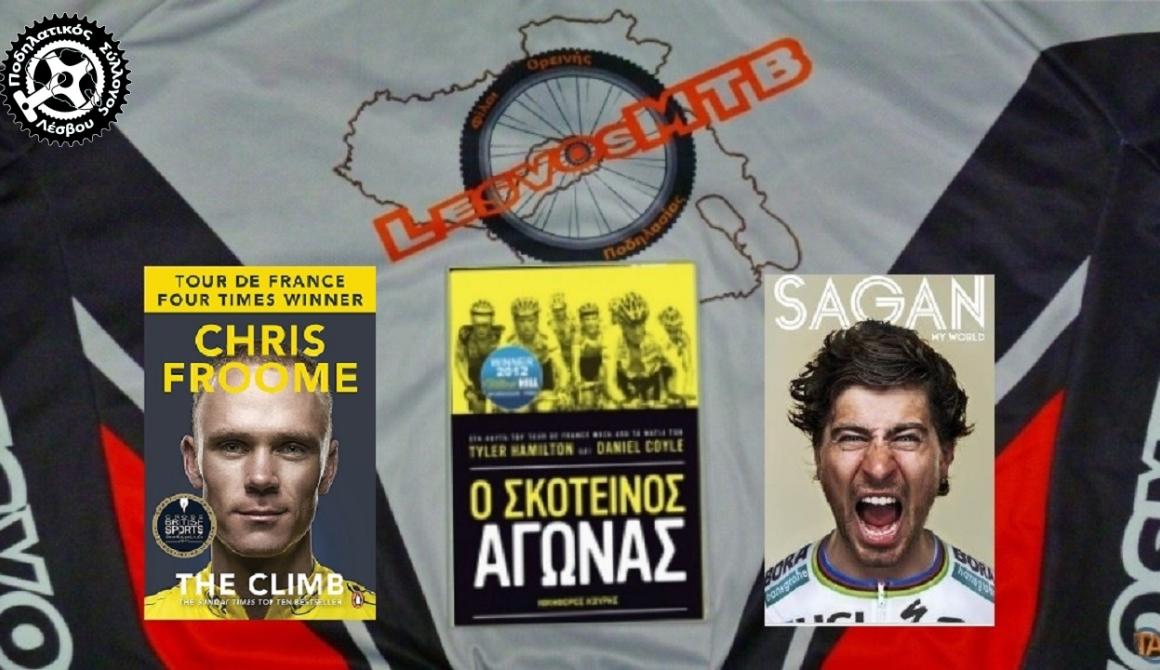 Ξεκινάμε με το "Σκοτεινός Αγώνας" του Tyler Hamilton (αναλυτικά μπορείτε να διαβάστε πληροφορίες στις σελίδες του Lesvos MTB , το "The Climb" του Chris Froome (4 φορές νικητής του γύρου Γαλλίας) και το "Sagan my world" του Peter Sagan.