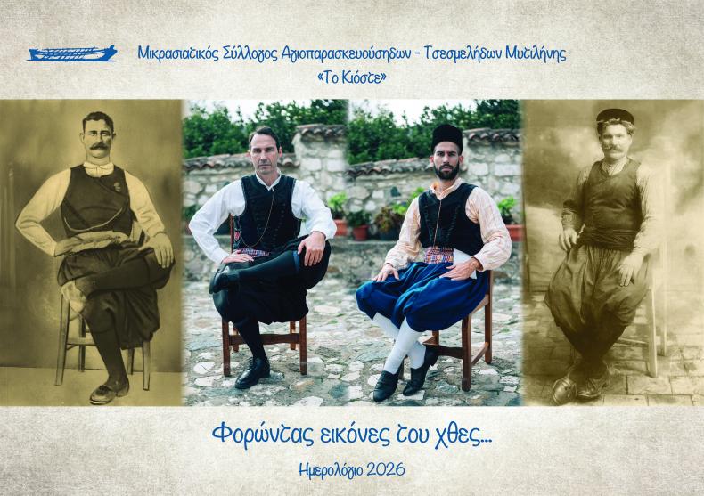 Ο Μικρασιατικός Σύλλογος Αγιοπαρασκευούσηδων - Τσεσμελήδων Μυτιλήνης «Το Κιόστε», συνεχίζοντας τη μελέτη και αποτύπωση της μικρασιατικής παράδοσης και λαογραφίας, εξέδωσε τρία διαφορετικής μορφής, αλλά και περιεχομένου ημερολόγια για το 2026, με θέμα την παραδοσιακή και την αστική ενδυμασία, καθώς και τα κοσμήματα που φορέθηκαν στην Αγία Παρασκευή του Τσεσμέ ως το 1922.