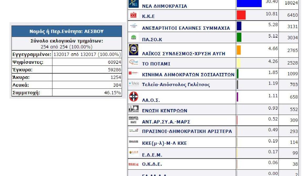 Δείτε εδώ τα αναλυτικά αποτελέσματα για κάθε δημοτική ενότητα της Λέσβου