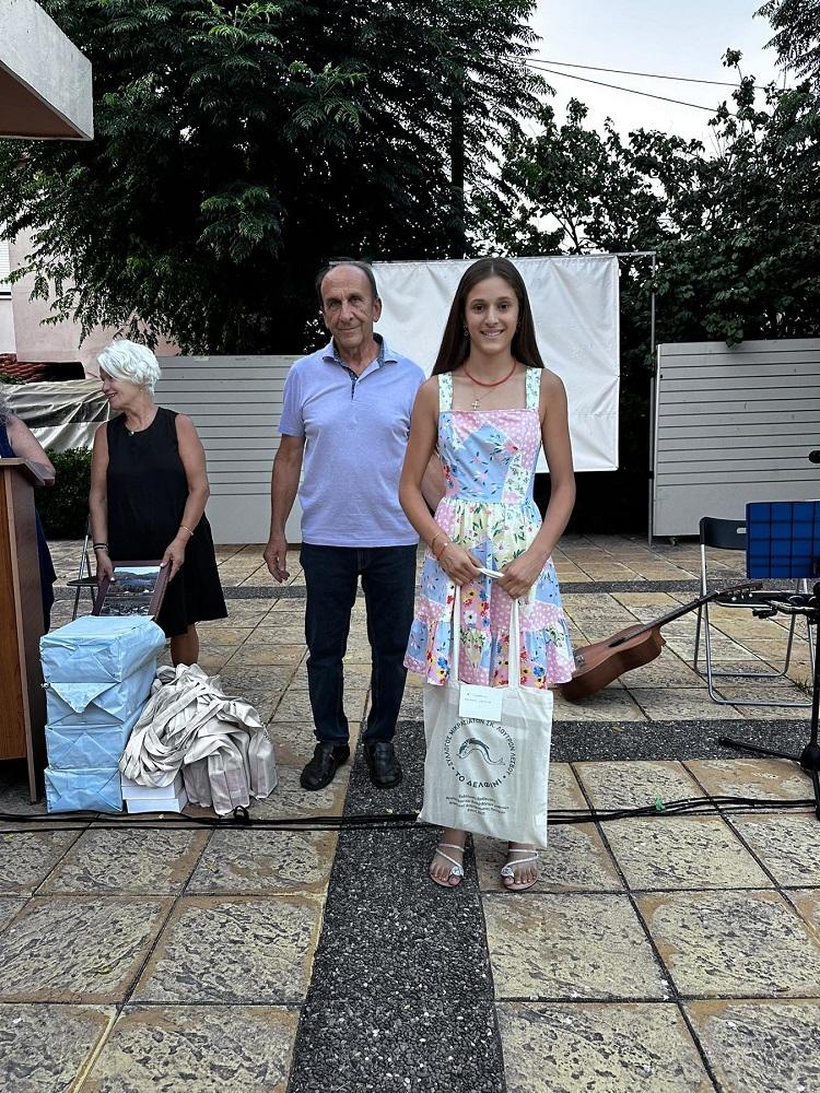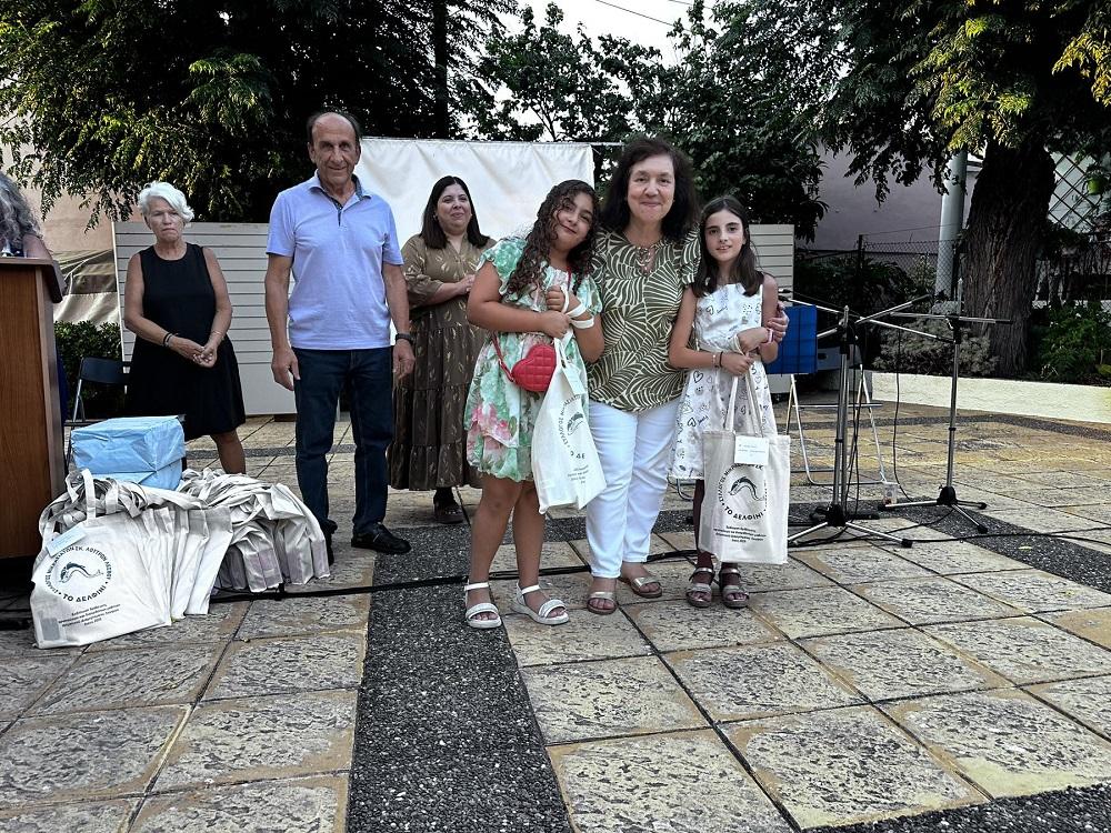 Συγκινητική ήταν η προφορά της οικογένειας του εκλιπόντος συγγραφέως κ. Απόστολου Γονιδέλλη, η οποία κατόπιν επιθυμίας της, θέλησε να βραβεύσει για 5η συνεχόμενη χρονιά τα αριστούχα παιδιά της Γ΄ Λυκείου με 100 ευρώ το καθένα, καθώς και από ένα βιβλίο του Απόστολου, -πέρα από τα δώρα που είχαν ήδη λάβει από τον Σύλλογο.