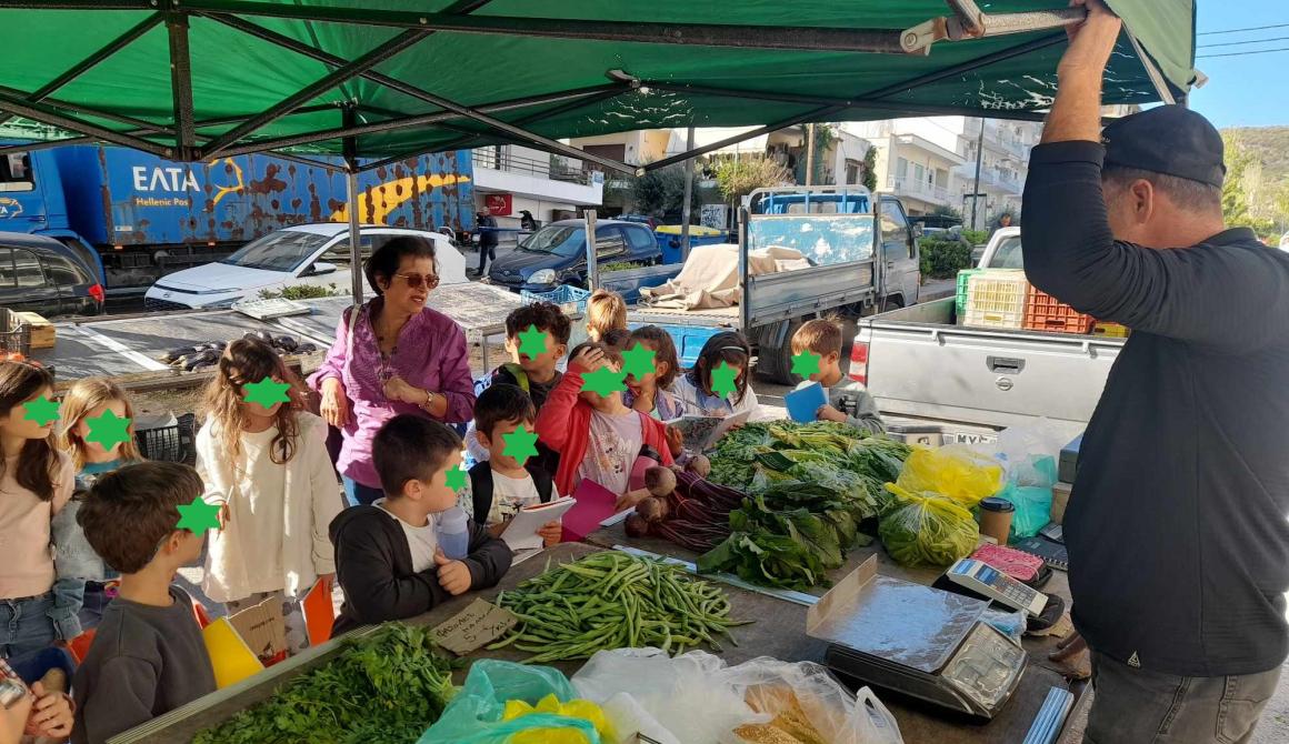 Οι μικροί παρατηρητές-δημοσιογράφοι, ξεκίνησαν τη γνωριμία με τη γειτονιά τους, από τη Λαϊκή Αγορά που κάθε Πέμπτη στήνεται λίγο πιο κάτω από το σχολείο τους. Μια χρυσή ευκαιρία να γνωρίσουν το επάγγελμα του παραγωγού, να ρωτήσουν για τις δυσκολίες του επαγγέλματος, την επίδραση των κλιματικών φαινομένων σ’ αυτές, να μάθουν για τα θερινά και χειμερινά λαχανικά και φρούτα.