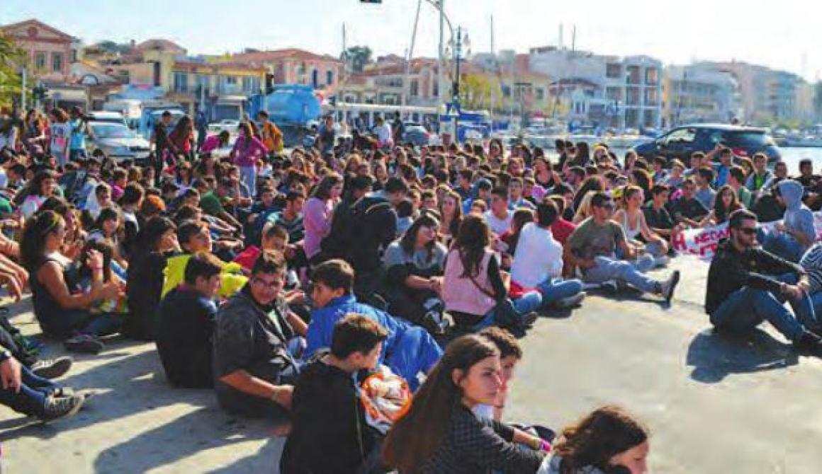 (φωτογραφία: καθιστική διαμαρτυρία μαθητών Παρακσευή 11/10/2013 / εφημερίδα ΕΜΠΡΟΣ)