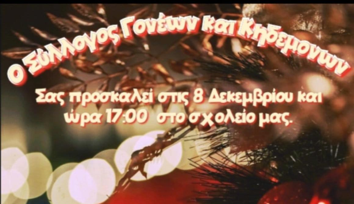 Ο Σύλλογος Γονέων και Κηδεμόνων του 7ου Δημοτικού Σχολείου Μυτιληνής σας προσκαλεί στο σχολείο μας, σε μια μοναδική γιορτινή ημέρα την Κυριακή 8 Δεκεμβρίου, γεμάτη γιορτινή διάθεση!