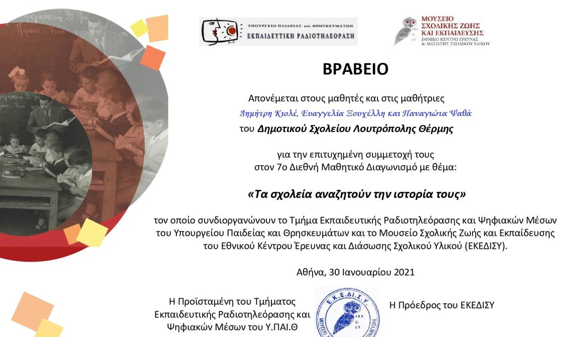 #Συγχαίρουμε τους τρεις μαθητές για την επιτυχία τους, που απαίτησε ερευνητική δουλειά, καταγραφή στοιχείων και ψηφιοποίηση αρχείων για πολλούς μήνες, τους ευχόμαστε σε ανώτερα και μακάρι να γίνουν πρότυπο και για τους μικρότερους μαθητές του σχολείου.