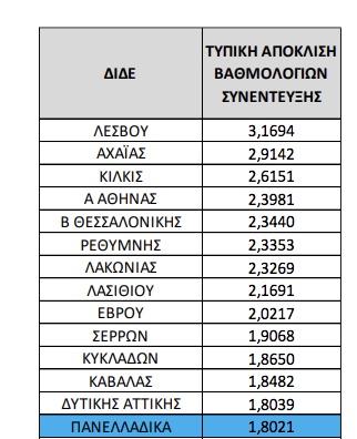 1. Η Λέσβος είχε τη μεγαλύτερη τυπική απόκλιση βαθμολογιών σε όλη την Ελλάδα.