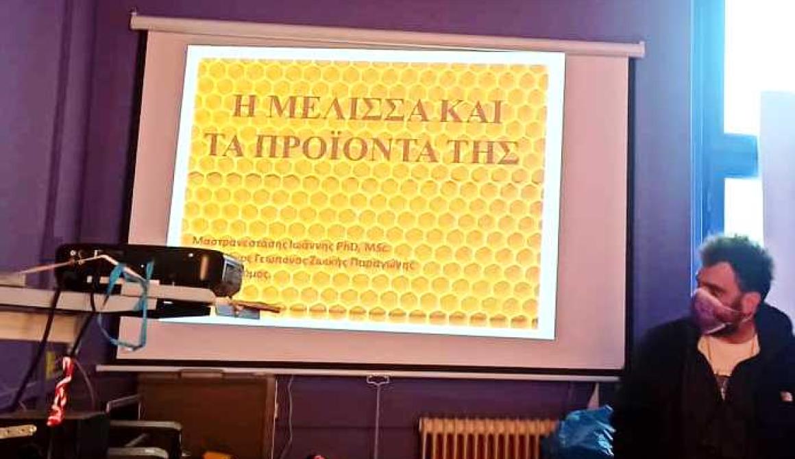 Εισηγητής ήταν ο γεωπόνος-μελισσοκόμος Γιάννης Μαστρανεστάσης που κράτησε αμείωτο το ενδιαφέρον των μαθητών και κάλυψε κάθε τους απορία. Η παρουσίαση ξεκίνησε με προβολή ppt, για το βασίλειο των μελισσών και την πολλή ιδιαίτερη ζωή τους.