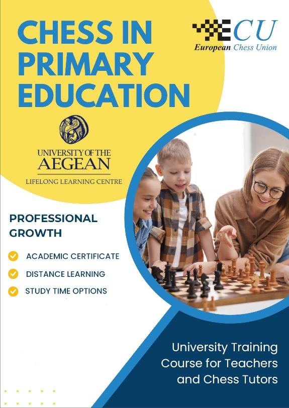 Το Πανεπιστήμιο Αιγαίου, μέσα από το Κέντρο Επιμόρφωσης και Δια Βίου Μάθησης (Κ.Ε.ΔΙ.ΒΙ.Μ.), είναι το πρώτο Ακαδημαϊκό Ίδρυμα στην Ευρώπη που δημιούργησε πιστοποιημένο πρόγραμμα επιμόρφωσης εκπαιδευτικών με αναγνωρισμένες μονάδες ECTS, συνδέοντας το σκάκι με τη διδακτική πράξη.