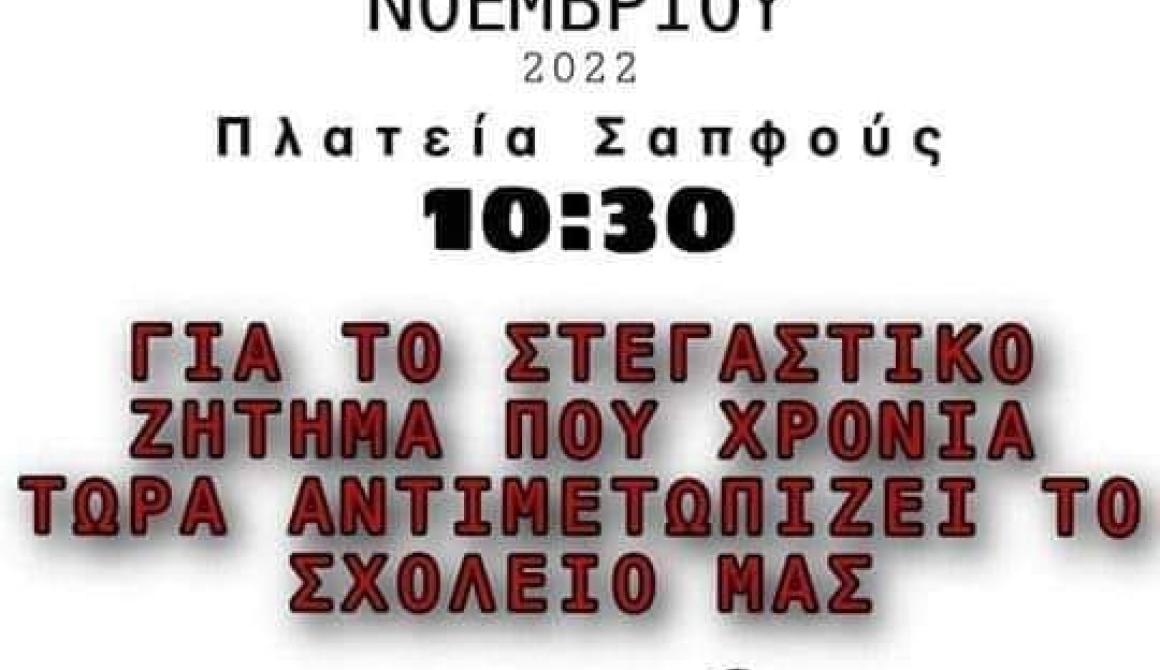 Ο Σύλλογος Διδασκόντων του Μουσικού Σχολείου Μυτιλήνης καλεί σύσσωμη την εκπαιδευτική κοινότητα, γονείς και μαθητές σε πορεία διαμαρτυρίας, σήμερα Τρίτη 15 Νοεμβρίου 2022, ύστερα από απόφαση που ελήφθη κατά τη διάρκεια έκτακτης γενικής συνέλευσης που πραγματοποιήθηκε σήμερα.