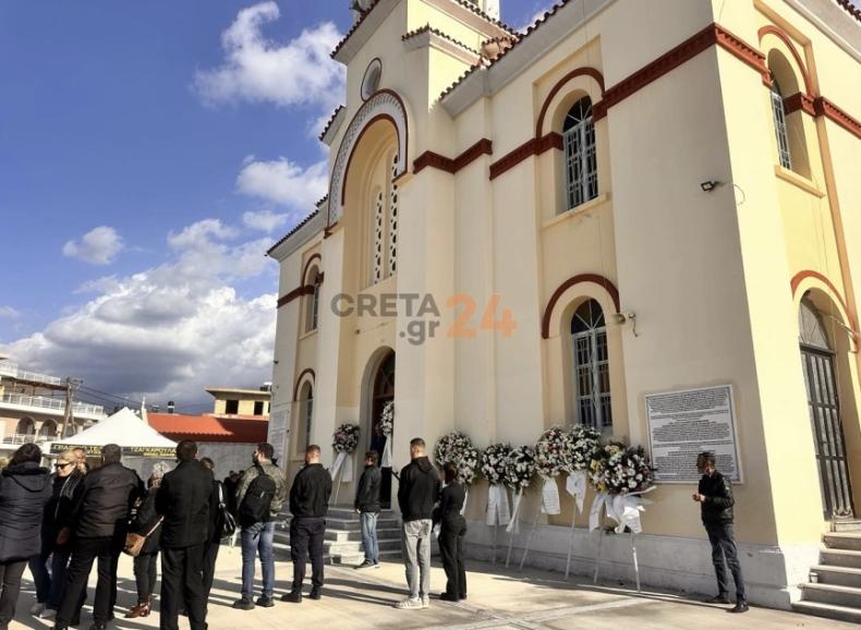 Το λευκό των τριαντάφυλλων και το γαλάζιο της ελληνικής σημαίας πάνω στο φέρετρο έσκιζαν την ατμόσφαιρα σαν σιωπηλή κραυγή. Από νωρίς το πρωί, συγγενείς, φίλοι, συμμαθητές, άνθρωποι που απλώς τον γνώρισαν στο διάβα της ζωής του, περνούσαν το κατώφλι του Ιερού Ναού Αγίου Τίτου. Όλοι κρατούσαν ένα λουλούδι. Όλοι κρατούσαν ένα βάρος.