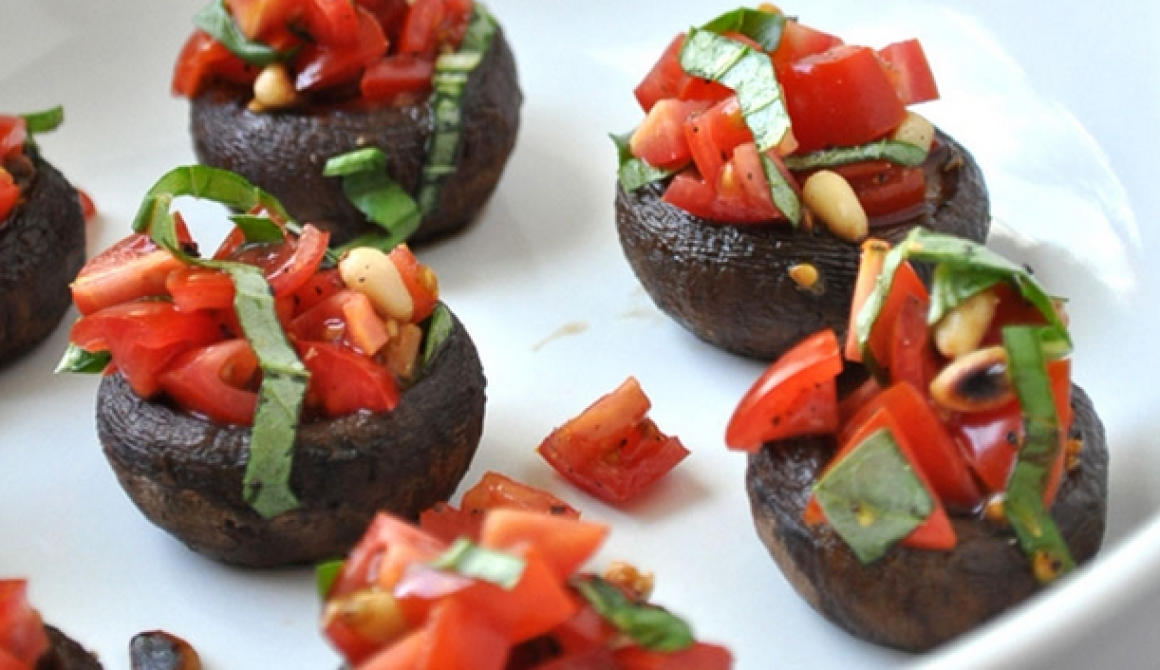 Γεμίζουμε τα μανιτάρια με το μίγμα με τις ντομάτες που φτιάξαμε και σερβίρουμε.