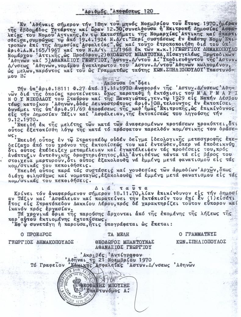 γ) με την αριθμ. 120/18-11-1970 για άλλον ένα χρόνο.