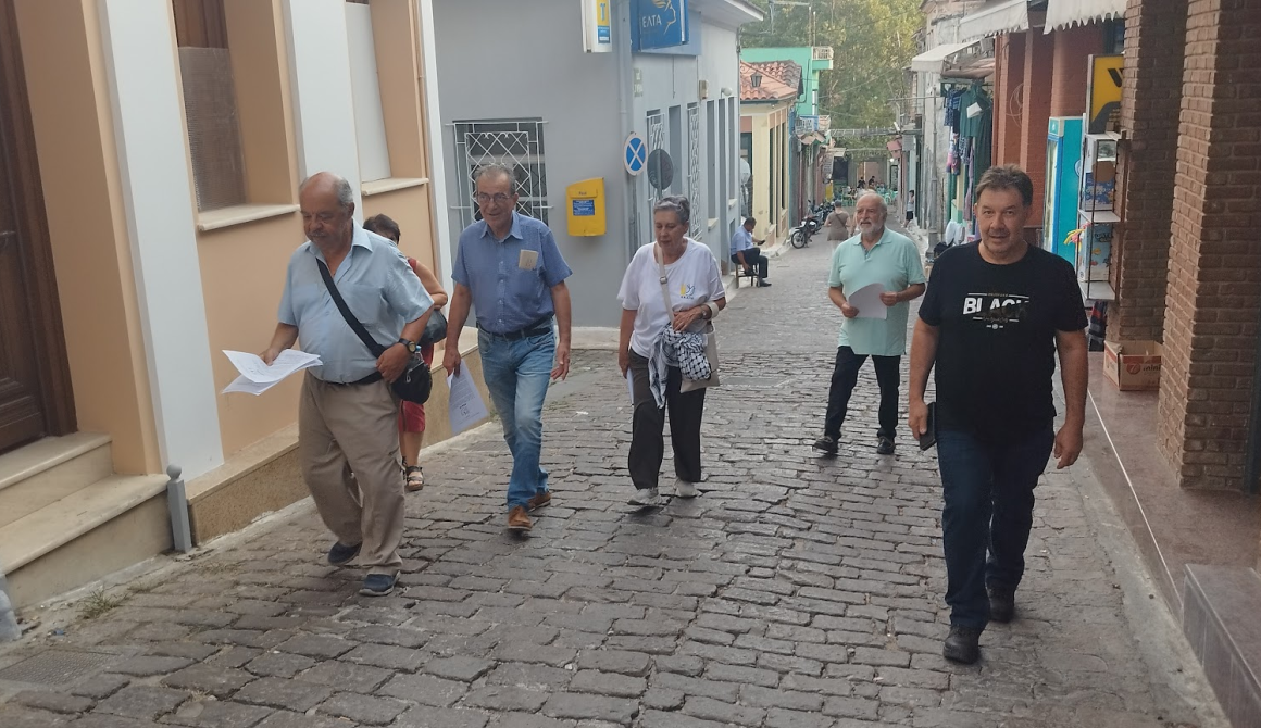 Έτσι την Τετάρτη, 6 Αυγούστου, μέρα βομβαρδισμού της Χιροσίμα, μέλη και φίλοι της Επιτροπής Ειρήνης, έκαναν περιοδεία το πρωί στην αγορά της Μυτιλήνης και το απόγεμα στην Αγιάσο και τη Σκάλα Καλλονής, και το Σάββατο, 9 Αυγούστου, μέρα βομβαρδισμού του Ναγκασάκι, περιόδευσαν στον Μανταμάδο και στα χωριά της Γέρας Σκόπελο, Μεσαγρό, Παπάδο και Πέραμα