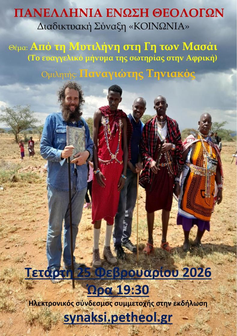 Αυτή τη διαδρομή ζωής φέρνει στο προσκήνιο η Πανελλήνια Ένωση Θεολόγων, η οποία την Τετάρτη 25 Φεβρουαρίου 2026 και ώρα 19:30 διοργανώνει διαδικτυακή Σύναξη «ΚΟΙΝΩΝΙΑ» με θέμα: