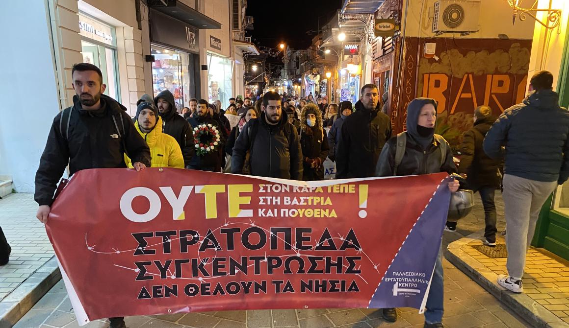 Στη συνέχεια ακολούθησε πορεία μέσα από την αγορά της Μυτιλήνης, με τα συνθήματα να «ζεσταίνουν» την κρύα ατμόσφαιρα, ενώ μοιράζονταν η ανακοίνωση στους περαστικούς και στους καταστηματάρχες.