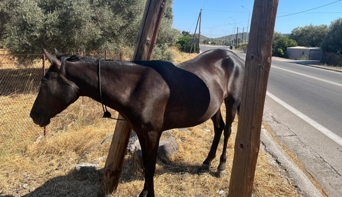 Από το πρωί δεμένο σε μια κολώνα δίπλα στο δρόμο "και ψάχνουμε τον ιδιοκτήτη". Η Περιφέρεια Βορείου Αιγαίου πόσο ακόμα θα περιμένει να κάνει όσα απαιτεί η Ελληνική Νομοθεσία δλδ. (i) Ελέγχους για τη σήμανση των ιπποειδών (ii) Σύσταση συνεργείου και δημιουργία χώρου προσωρινής φιλοξενίας "αδέσποτων" ιπποειδών; κε Περιφερειάρχα Κώστας Μουτζούρης μας ακούτε;