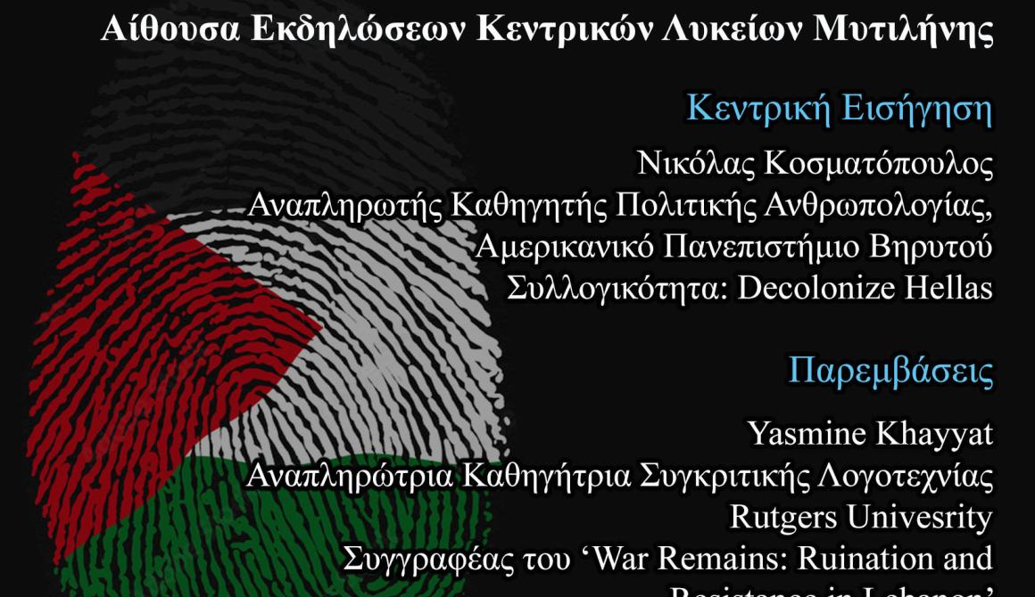 Ενημερωτική εκδήλωση για την Παλαιστίνη στα Κεντρικά Λύκεια Μυτιλήνη