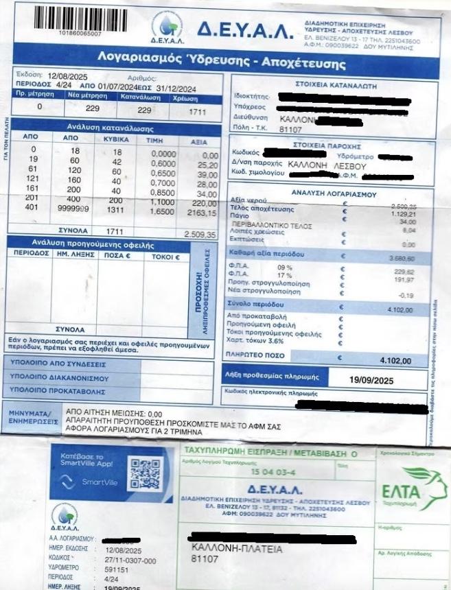 Σύμφωνα με μαρτυρίες πολιτών στην Καλλονή, αλλά και σε χωριά της περιοχής, οι λογαριασμοί φτάνουν σε δυσθεώρητα ποσά. Χαρακτηριστική είναι περίπτωση που αναφέρει το kalloninews.gr στην οποία ο λογαριασμός ανήλθε στα 4.102 ευρώ για έξι μήνες – ποσό που οι κάτοικοι χαρακτηρίζουν εξωπραγματικό, καθώς, όπως σχολίασαν, «ούτε με τη βρύση ανοιχτή μέρα-νύχτα δεν θα έφτανε ποτέ τόσο».