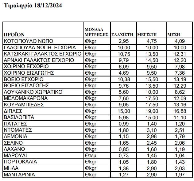 - Ντομάτες: 2,51 € → 2,19 € (ελαφρά πτώση)