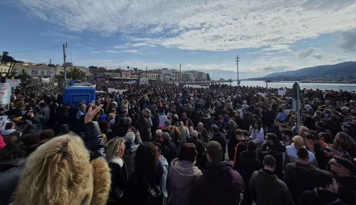 Δύο χρόνια μετά την τραγωδία που συγκλόνισε την Ελλάδα, η Μυτιλήνη έγραψε ιστορία. 28η Φεβρουαρίου και Μυτιλήνη είπε το δικό της "ΟΧΙ" στη συγκάλυψη. Ποτέ άλλοτε δεν είχε δει το νησί τέτοια κοσμοσυρροή, τέτοιο παλμό, τέτοια συγκίνηση. Με διαφορά η μεγαλύτερη συγκέντρωση που έγινε στη Μυτιλήνη από την μεταπολίτευση και μετά. Με βάση τους υπολογισμούς * ο κόσμος ξεπέρασε τους 20.000 . Η πλατεία Σαπφούς καθώς και το πέταλο της προκυμαίας γέμισε από χιλιάδες πολίτες που, με δάκρυα στα μάτια και φωνές γεμάτες οργή και απαίτηση για δικαιοσύνη, ένωσαν τις φωνές τους στη μεγαλύτερη συγκέντρωση που έχει πραγματοποιηθεί ποτέ στη Λέσβο.