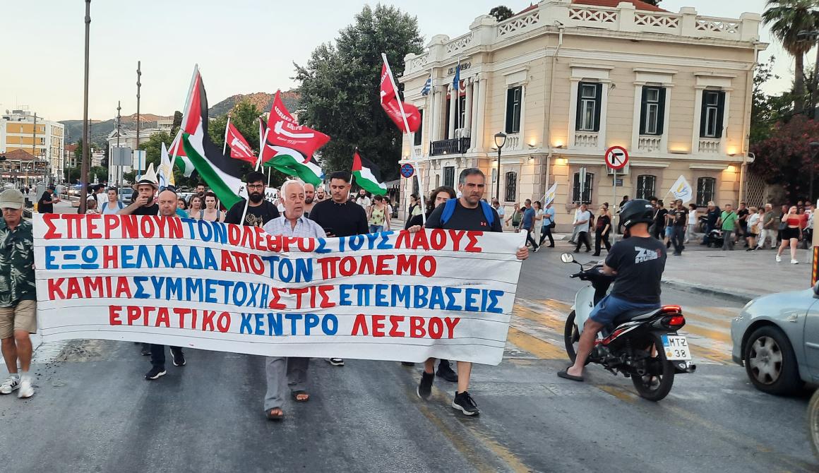 Η Μυτιλήνη βροντοφωνάζει: Έξω η Ελλάδα από τα σφαγεία του πολέμου – Λευτεριά στην Παλαιστίνη