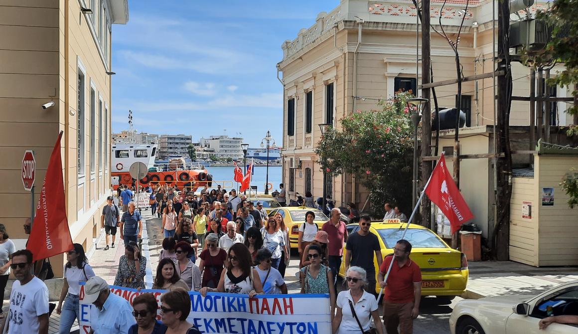 Ακολούθησε πορεία στο κέντρο της Μυτιλήνης, με συνθήματα όπως «Εργάτη πολέμα, το 8ωρο κερδήθηκε με αγώνες και αίμα» και «Μετά τα 70 σε θέλουν στη δουλειά να ζεις και να πεθαίνεις για τα αφεντικά!» να δονούν την ατμόσφαιρα.