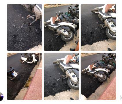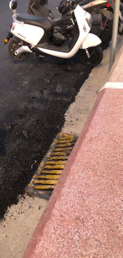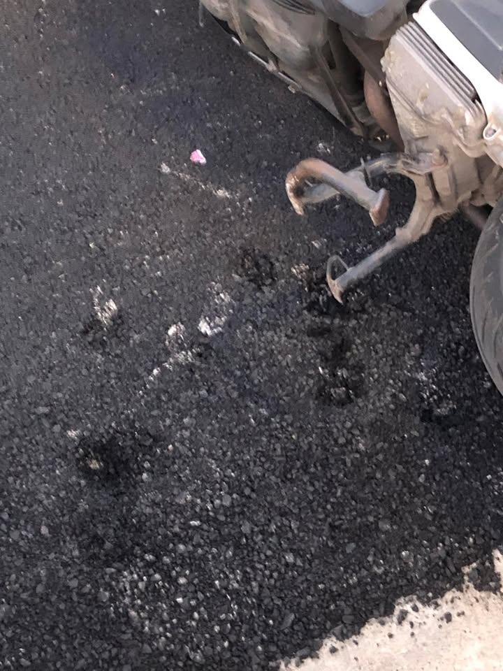 Οι εικόνες μιλούν από μόνες τους, με εμφανείς τρύπες κάτω από τη βέσπα που δείχνουν την ακατάλληλη υποδομή του νέου οδοστρώματος.