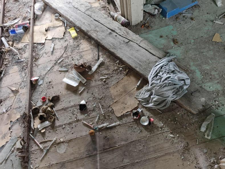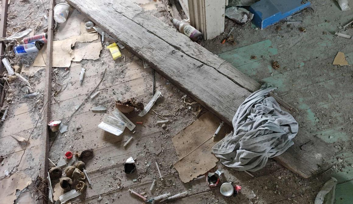 - συσκευές και σύνεργα χρήσης ουσιών πάνω στο παλιό ξύλινο πάτωμα,