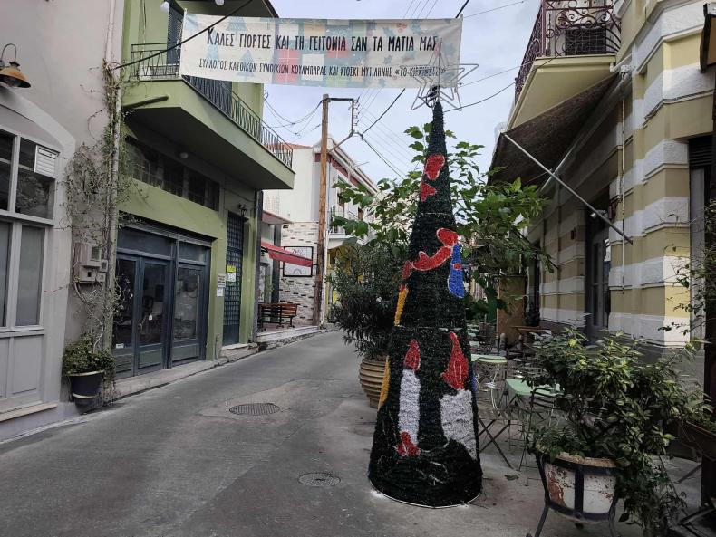 Άναψε χτες 26 Νοεμβρίου το βράδυ, το χριστουγεννιάτικο δένδρο του Συλλόγου των Κατοίκων των Συνοικιών Κουλμπάρας και Κιόσκι Μυτιλήνης «το κιρκινέτσι» στην είσοδο της γειτονιάς, στη συμβολή της οδού Βερναρδάκη με την οδό Μητροπόλεως. Το δένδρο «συνοδεύεται» από πολλές ευχές και την προτροπή «...και τη γειτονιά σαν τα μάτια μας» και στήθηκε με την πολύτιμη βοήθεια γειτόνων και φίλων μελών του Συλλόγου και της εταιρείας «ΗΧΩ Α.Ε» και του Δημήτρη Τσαμουρά.