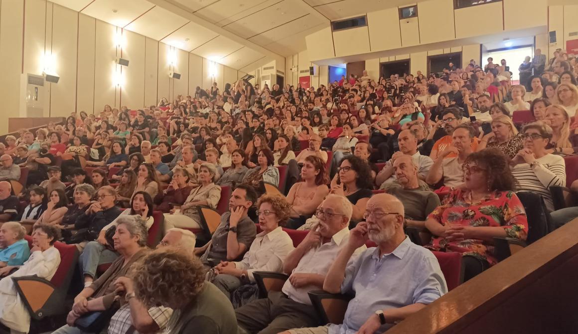 Καθηλωμένοι ακόμη και στα σκαλάκια του Δημοτικού θεάτρου εκατοντάδες άνθρωποι ήρθαν και στήριξαν τη δράση του Πανεπιστημίου, ήρθε να ακούσει και να ενημερωθεί για τη "συγκάλυψη του αιώνα", όπως ανέφερε ο κύριος Παύλος Ασλανίδης, να ακούσει για τη δημιουργία το Σύλλογου των συγγενών των θυμάτων των Τεμπών που πολεμά με αυτό το Τέρας. Γι αυτή την ανταπόκριση μίλησε στην αρχή της εκδήλωσης ο καθηγητής Μιχάλης Ψημίτης. "Τους στηρίζουμε για αυτά που κάνουν, η αλληλεγγύη μας έχει έναν χαρακτήρα μιας ευγνωμοσύνης γιατί αυτοί οι άνθρωποι κρατάνε ψηλά τη σημαία της ανθρώπινης αξιοπρέπειας".