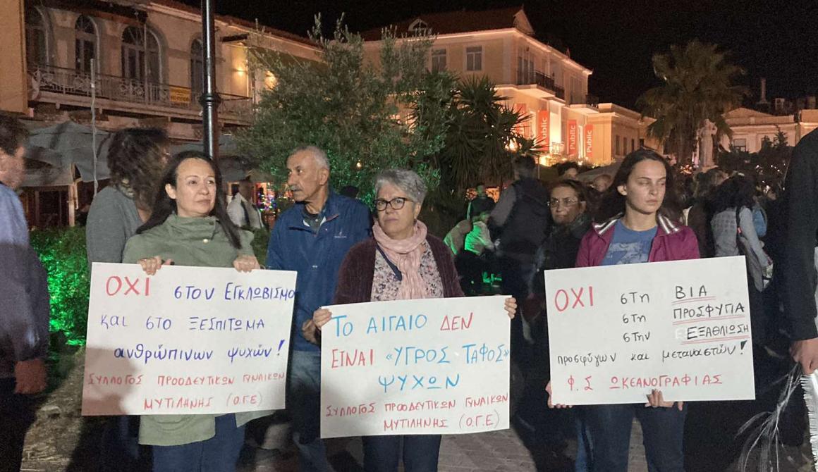 Ο Σύλλογος Προοδευτικών Γυναικών Μυτιλήνης χαιρετίζει όλες και όλους όσοι παραβρέθηκαν στη συγκέντρωση στην Πλατεία Σαπφούς, όλες και όλους όσοι καταδίκασαν αυτούς που έχουν μετατρέψει το Αιγαίο σε υγρό «τάφο» κατατρεγμένων από τους πολέμους, τη φτώχεια και την εξαθλίωση, αντί για θάλασσα Ειρήνης.